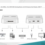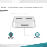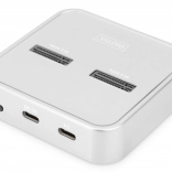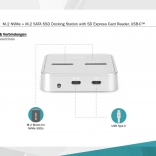 A sokoldalú DIGITUS dokkolóállomás két független M.2 SSD‑foglalatot kombinál – egyet NVMe-hez (B+M Key / M‑Key) és egyet SATA-hoz (B+M Key) – valamint egy SD Express 7.1 kártyaolvasót. Így rugalmas központot kap adatkezeléshez és migrációhoz, foglalatonként akár 4 TB‑os meghajtók, valamint akár 2 TB‑os SD-kártyák támogatásával.