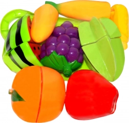 Szórakoztató készlet kis szakácsoknak: tartalmaz egy műanyag vágódeszkát, egy biztonságos gyerek kést és tépőzáras gyümölcsöket, amelyeket újra és újra „felszeletelhetnek” és összekapcsolhatnak. Remek játék a finommotorika fejlesztésére, a szeletelés gyakorlására és a biztonságos játékhoz éles élek nélkül. 3 éves kortól ajánlott.