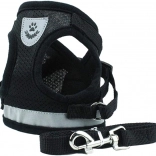Az egyszerű beállításnak köszönhetően a pántokkal a hámot pontosan a kedvence testalkatához igazíthatja. A fényvisszaverő elemek szürkületben és sötétben is növelik a láthatóságot, a megbízható rögzítést pedig a csomagban található fém karabineres póráz biztosítja.