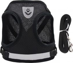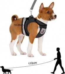 A csomagban levehető póráz található erős fém karabinerrel (110 cm). Az XS méret kis kedvenceknek ideális – mellkas 19–26 cm, nyak 19–25 cm.
