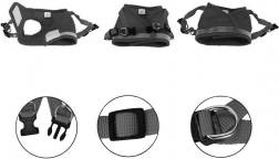 A nyomásmentes hám a húzóerőt a mellkas és a vállak felületén oszlatja el, így nem szorít úgy, mint egy hagyományos nyakörv, és jobb kontrollt biztosít a séták során. A légáteresztő háló melegebb időben is kényelmet nyújt, míg a fényvisszaverő elemek növelik a láthatóságot szürkületben és sötétben.