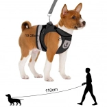 A hám a húzóerőt a kényes nyaki területen kívül oszlatja el, így kényelmesebb és jobban irányítható, mint egy hagyományos nyakörv. A fényvisszaverő elemek növelik a láthatóságot alkonyati séták során.