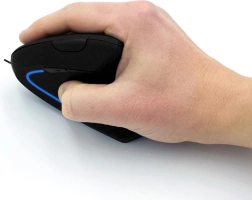 A vertikális forma támogatja a „kézfogás” fogást, csökkentve a csukló hajlítását és az alkar csavarását. Ideális hosszú számítógépes munkához.