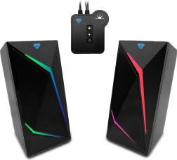 A hangszórók változékony LED RGB háttérvilágítással vannak felszerelve, amely reagál a zene ritmusára vagy beállítható állandó és változó színű effektusokra. A hang- és vizuális élmény erősítéséhez elérhető egy irányító modul a hangerő és a csatlakozási üzemmódok vezérlésére.