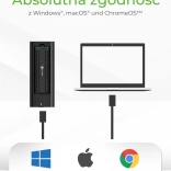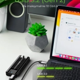 A számítógéphez vagy laptophoz való csatlakoztatás egyszerű a USB 3.2 (Gen 2) interfészen keresztül a mellékelt Type‑C kábellel és az integrált Type‑A adapterrel. Így univerzális kompatibilitást és villámgyors, akár 10 Gb/s átvitelt kap. A masszív alumínium ház segíti a hőelvezetést és stabil működést biztosít.
