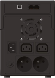 Az UPS két 230 V (Schuko) aljzattal és két IEC kimenettel rendelkezik, így több eszköz is könnyen csatlakoztatható. Az RJ11/RJ45 (IN/OUT) védelem óvja a telefon- és adatvonalakat a túlfeszültségtől, az USB interfészen keresztül pedig a készülék felügyelete és menedzsmentje is megoldható. Ideális választás megbízható tápellátáshoz otthon és kis irodai környezetben.