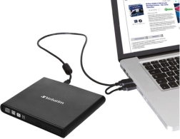 A VERBATIM külső slim meghajtóval bővítheti laptopját a CD- és DVD-olvasás és -írás lehetőségével irodában, otthon vagy útközben. Vékony kialakításának köszönhetően könnyen elfér a táskában, és egyetlen USB 2.0 kábellel csatlakoztatható – külső tápellátás nélkül.