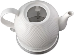 A fehér, plasztikus mintázatú kerámia időtálló hatást kelt, és illik a modern és a hagyományos konyhákba is. A vízforralót közvetlenül az asztalon, teáskannaként is felszolgálhatja.