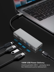 A multifunkciós USB-C elosztó csatlakoztatási lehetőségeket bővít HDMI, USB és kártyaolvasók portjaival.