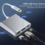 USB C HUB Adapter 3 az 1-ben - HDMI, USB, PD ezüst