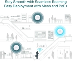 A készülék támogatja a 160 MHz sávszélességet, melynek köszönhetően a HE160 révén megduplázódik az egy adatfolyamra jutó adatmennyiség. A pontos barangolás funkció biztosítja, hogy a videóhívások vagy hanghívások ne szakadozzanak meg, amikor a felhasználók helyet váltanak. Az Omada Mesh funkció segítségével a hozzáférési pontok vezeték nélküli kapcsolat révén növelhetik a hálózati lefedettséget és elhelyezésük rugalmasságát.