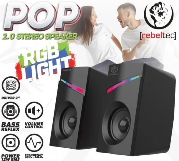 Stílusos sztereó hangszórók 2.0 az Ön PC-jéhez, laptopjához, táblagépéhez vagy okostelefonjához lenyűgöző LED RGB háttérvilágítással.