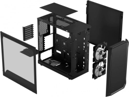A Focus 2 pontos és letisztult dizájnt kínál, amelyet gondosan úgy terveztek, hogy maximálisan kihasználja a légáramlásban rejlő lehetőségeket. Az innovatív belső elrendezési megközelítés biztosítja a légáramlást a vázon keresztül, ami megkönnyíti az összeszerelést és a bővítést, miközben optimalizálja az alkatrészek közvetlen hűtését.