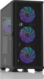 Az optimalizált szellőzés és a mesh panelek felgyorsítják a hőelvezetést. A gyárilag szerelt 4×120 mm‑es ventilátor stabil hőmérsékletet biztosít terhelés alatt is.
