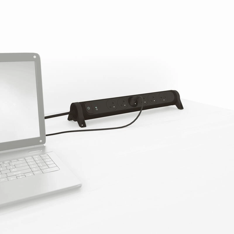 A fekete kivitel elegáns, és nem zavarja a modern belső tereket. Praktikus megoldás otthonra, irodába és műhelybe is, ahol biztonságosan kell elosztani az áramot több eszköz számára egyszerre.