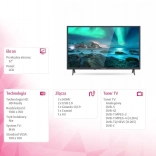 A televízió könnyű használatra készült – az áttekinthető távirányítótól a hátlapi praktikus csatlakozási lehetőségekig. A stabil lábak biztonságos elhelyezést biztosítanak a TV-állványon, és minimalizálják a rezgéseket kezelés közben.