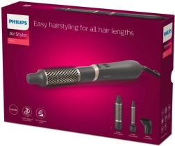Az egyidejű szárítás és formázás a Philips Air Styler Essential készülékkel gyönyörű, természetes frizurák kialakítását teszi lehetővé, miközben ápolja a hajat. A három tartozék hosszú és rövid hajhoz egyaránt alkalmas, így a formázás nagyon egyszerű.