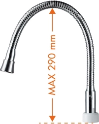 A csomag része kétféle kifolyó – merev a stabil vízsugárhoz és rugalmas a vízsugár pontos irányításához. Az egyszerű vezérlés lehetővé teszi a gyors elérést akár 60 °C hőmérsékletig, így ideális edények mosásához, takarításhoz és mindennapi higiéniához.