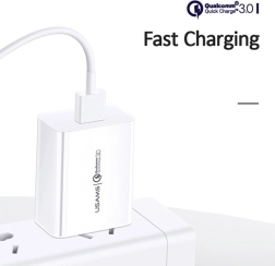 Megbízható és hatékony hálózati töltő USAMS T22, mely gyors töltést biztosít az intelligens rendszernek köszönhetően, amely az eszköz és annak töltöttségi szintje alapján állítja be a feszültséget.