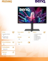 A BenQ PD2506Q egy 25"-os professzionális monitor QHD (2K) felbontással, minőségi IPS panellel, pontos színmegjelenítéssel és ergonomikus magasság-, döntés- és pivotállítással. Gyors, 5 ms válaszidőt, széles csatlakoztatási lehetőségeket HDMI-vel és USB-vel kínál, ideális irodába, otthoni munkához és kreatív feladatokhoz.