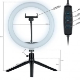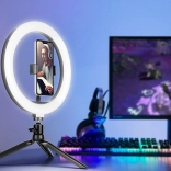 Szerezz tökéletesen egyenletes megvilágítást streameléshez, videóhívásokhoz és közösségi tartalomkészítéshez. A 26 cm átmérőjű körlámpa 120 LED-et, 3 színhőmérsékletet (2700–7000 K), 10 fényerőszintet és 600–1300 lm fényáramot kínál. A USB-tápellátásnak, a kábelre épített háttérvilágításos vezérlőnek és a forgófejes mini állványnak köszönhetően könnyen beállíthatod az ideális feltételeket árnyékmentes felvételekhez.