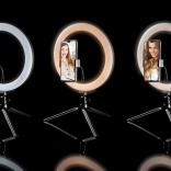 A gyűrű közepére helyezett telefon és a meleg, semleges vagy hideg fény színének választása valósághű színvisszaadást és hibátlan bőrt biztosít a felvételen.