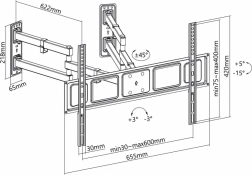 Állítsa be a tévét az ideális szögbe, lehetőséggel a vertikális beállításra -15-től 5 fokig, és a horizontális állításra -45-től 45 fokig.