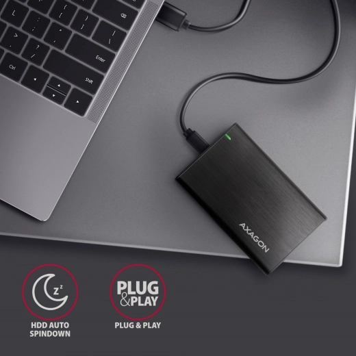 Ez az elegáns alumínium ház lehetővé teszi a könnyű és gyors összeszerelést csavarok használata nélkül. A SATA 6G interfész támogatása és az UASP technológia biztosítja az SSD lemezek maximális teljesítményét, miközben a TRIM funkció segít csökkenteni az időbeli teljesítményromlást. A S.M.A.R.T. támogatásnak köszönhetően könnyen figyelheti a csatlakoztatott lemezek állapotát.