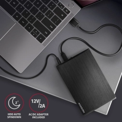 Az AXAGON ALINEbox ideális választás a merevlemez védelméhez és nagyszerű teljesítményéhez. Gyors és egyszerű adatátvitelt biztosít az UASP-támogatásnak és az USB 3.2 Gen 1 szabványnak köszönhetően. Kiváló hőelvezetést biztosít az alumínium konstrukció, amely emellett a merevlemez mechanikai védelmét is elősegíti.