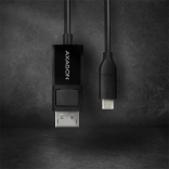 A praktikus, aktív kábel egyetlen kompakt megoldásban egyesíti az átalakítót és az összekötő vezetéket. Lehetővé teszi, hogy USB‑C‑s eszköz tartalmát DisplayPortos kijelzőn jelenítse meg csúcsminőségű Ultra HD 4K képpel 60 Hz‑en, beleértve a többcsatornás hangot is. A DP csatlakozó reteszeléssel és kioldógombbal rendelkezik a stabil és biztonságos kapcsolathoz, a tápellátás közvetlenül az USB‑C‑ről történik – külső adapter nélkül.