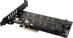 Bővítse asztali számítógépét modern tárhellyel az AXAGON adapterrel, amely PCI‑Express 3.0 x4 csatolóval rendelkezik. Két egymástól független M.2 foglalatot kap – NVMe (M‑key) és SATA (B‑key) SSD-khez – egyidejű használati lehetőséggel és sebességkorlátozás nélkül. A 2230/2242/2260/2280/22110 méretek támogatása maximális rugalmasságot biztosít a meghajtóválasztásban.