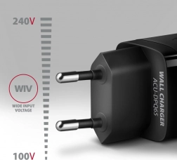 A kompakt AXAGON GaN 65W utazó töltő akár három eszközt is gyorsan feltölt egyszerre. A GaN technológiának köszönhetően nagy teljesítményt kínál kis házban, két USB‑C porttal Power Delivery 3.0/QC 4+ támogatással és egy USB‑A porttal QC 3.0. Támogatja a PPS, Samsung SFC/SFC 2.0 és Apple PD 20–27W szabványokat, valamint képes notebookokat is táplálni akár 65W‑ig.