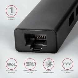 - 4 az 1-ben: 3x USB‑A + RJ‑45 Gigabit LAN