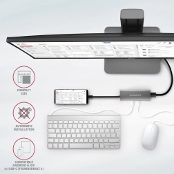 - 5 az 1‑ben: 2× USB‑A, 2× USB‑C, 1× HDMI