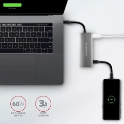Bővítse eszköze csatlakoztathatóságát négy gyors USB porttal és minőségi HDMI képkimenettel. A hub képes külső SSD‑k, sőt egyszerre több meghajtó csatlakoztatására, USB‑C porton keresztül akár 3 A‑ig tölti a mobilokat és táblagépeket, és a PD átmenő tápellátással felszabadítja a notebook egy portját. Az alumínium váz tartósságot és hatékony hőelvezetést biztosít, így utazáshoz és asztali használatra egyaránt ideális.