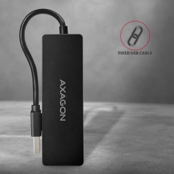 Az AXAGON HUE-G1A elegáns és tartós hub félmatte felülettel, amelyen nem látszanak meg az ujjlenyomatok. Könnyedén csatlakoztathat hozzá pendrive-ot, billentyűzetet, egeret és egyéb perifériákat, és a USB 3.2 Gen 1 révén akár 5 Gb/s nagy átviteli sebességet élvezhet. Ideális a kevés USB-A porttal rendelkező modern laptopokhoz és utazáshoz is.