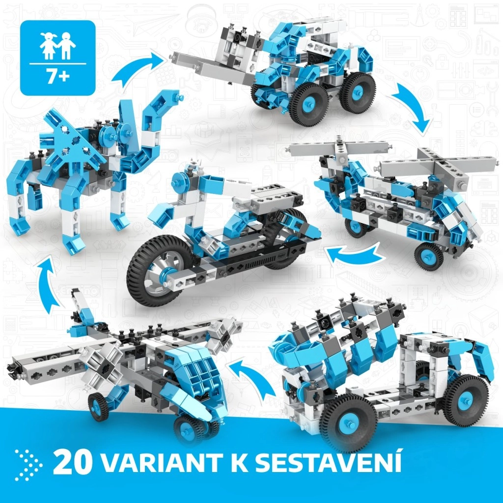 A motorkerékpártól és repülőtől a rakodógépen át a robotokig és állatokig – a gyerekek 20 különféle projektet építhetnek, és bármikor könnyedén át is alakíthatják őket.