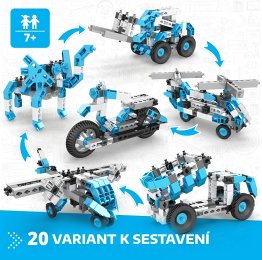 Az Engino Box 20 modell építőkészlet a 7 éves kortól ajánlott gyermekek számára órákon át tartó, szórakoztató felfedezését kínálja a szerkezetek és a mérnöki alapelvek világának. Egyetlen készletből autókat, motorokat, repülőket, helikoptereket, robotokat és állatokat építhet – mindet valósághű részletekkel és funkciókkal a fantáziadús játékhoz. Az elemek masszívak, könnyűek és kényelmesen illeszthetők.