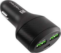 A NATEC Coney elegáns és strapabíró autós töltő 12/24 V-os aljzathoz, amely egyszerre képes telefont, tabletet és kisebb laptopot is ellátni energiával. Az összesen 84 W teljesítménynek és a három portnak – USB‑C PD 3.0 (60 W) és 2× USB‑A QC 3.0 – köszönhetően megbízható, gyors töltést kapsz minden utazás során.