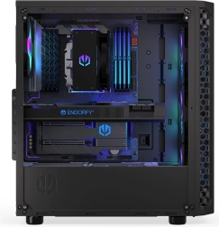 Az átgondolt belső elrendezésnek köszönhetően könnyedén beszerelheted a hosszú videokártyákat, a nagy teljesítményű hűtést és több meghajtót. Az integrált ARGB vezérlő (splitterrel) lehetővé teszi a fényhatások összehangolását más Endorfy termékekkel.