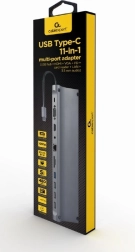 - 11 az 1-ben funkciók: USB hub, 4K HDMI és Full HD VGA, hang, LAN port, kártyaolvasó és USB Type-C PD töltő.