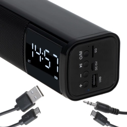 Kompakt megoldást keresel az íróasztalra vagy az éjjeliszekrényre? Ez a sokoldalú, soundbar kivitelű hangszóró tiszta, kiegyensúlyozott hangzást, jól olvasható LED órát és praktikus ébresztőt kínál. Streamelj vezeték nélkül Bluetooth 5.0-val, vagy játssz le zenét USB-ről és SD-kártyáról. Vezetékes forrásokhoz rendelkezésre áll egy AUX bemenet.