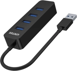 A kompakt, aktív Unitek uHUB Q4 USB hub 4 db USB‑A 3.0 porttal bővíti a laptop vagy PC csatlakozásait, akár 5 Gbps adatátviteli sebességgel, valamint opcionális USB‑C tápellátással akár 10 W-ig. A Plug & Play miatt illesztőprogramok telepítése nélkül működik, és kompatibilis Windows, macOS és Linux rendszerekkel.