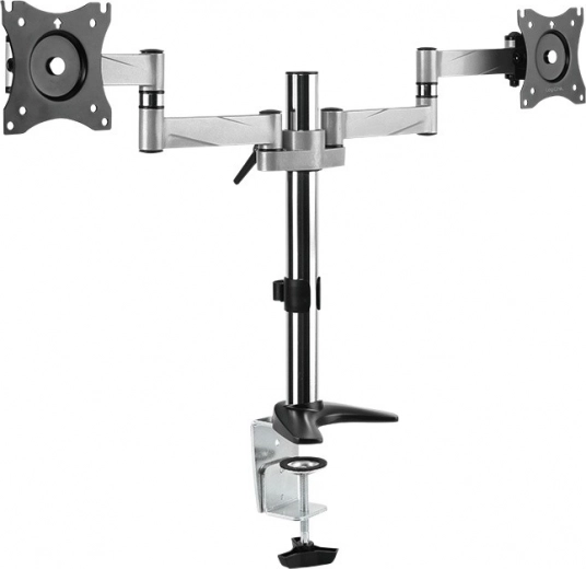 Az Asztali tartó két monitorhoz 13–27 ideális választás ergonomikus munka- és játékrendszerekhez. Kínál szilárd stabilitást, fokozatmentes pozícióbeállítást és maximális, 16 kg teherbírást. A asztali szorítónak köszönhetően helyet takarít meg az asztalon, és biztonságos rögzítést biztosít.