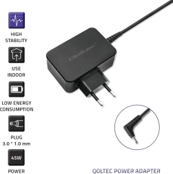 A Qoltec töltő stabilitást és alacsony energiafogyasztást biztosít hosszú távú használathoz.