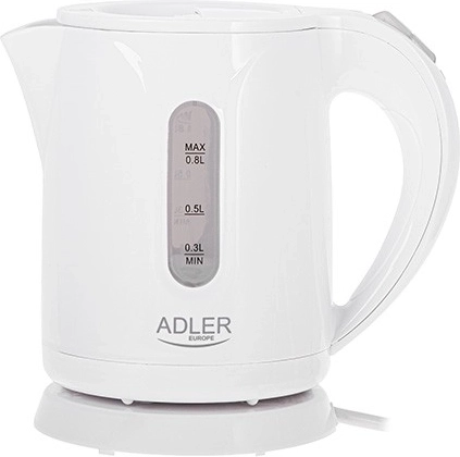 Klasszikus, 0,8 literes vízforraló, amely minden konyhába, irodába és szálláshelyre illik. Biztonságáról a zár gondoskodik, amely megakadályozza az üres vízforraló bekapcsolását, valamint a víz felforrásakor történő automatikus kikapcsolás. A vízforraló üledékfogó szűrővel rendelkezik, amely javítja a víz ízét és minőségét. A funkcionalitást a stabil talp és a könnyen leolvasható vízszintjelző növeli. Nagyon kényelmes a lapos alj és a forgatható talp miatt. A vízforraló takarékos, 850 W-os teljesítménnyel büszkélkedhet.