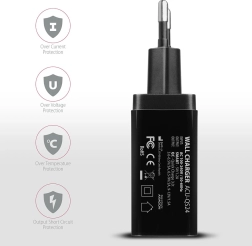Az AXAGON ACU-QS24 biztonságos és hatékony töltést biztosít mobil eszközeid számára. Két független USB porttal rendelkezik, amelyek Quick Charge 3.0 és Smart 5V/1.2A technológiát biztosítanak, így gyorsan feltöltheted telefonjaidat és táblagépeidet.
