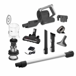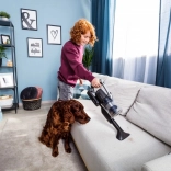 A csomag része a PET speciális szívófej állatszőrhöz, SOFA (kárpit) fej, résszívó és portörlő tartozékok, valamint kefe könyvekhez és finom felületekhez. A fali tartó megkönnyíti a porszívó és kiegészítők tárolását, míg a túlmelegedés elleni akkumulátorvédelem és az előmotor szűrő növeli a készülék élettartamát.