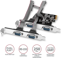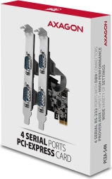 Az AXAGON PCEA-S4N PCI-Express kártya négy RS-232 soros portot ad a PC-jéhez DB9 csatlakozókkal. A bevált ASIX AX99100 chipkészlet stabil kommunikációt, nagy átviteli képességet és teljes kompatibilitást biztosít ipari eszközökkel, pénztári rendszerekkel vagy CNC gépekkel. A telepítés egyszerű a Plug and Play támogatásnak és a mellékelt takarólemezeknek köszönhetően, standard és alacsony profilú házakhoz egyaránt.