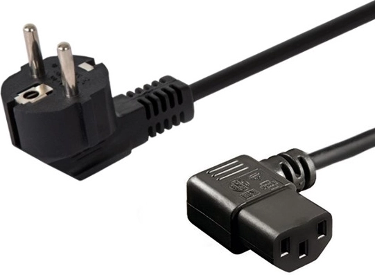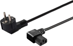 Kiváló minőségű és univerzális tápkábel derékszögű Schuko és IEC C13 csatlakozókkal, ideális monitorok, számítógépek, nyomtatók és projektorok csatlakoztatásához.